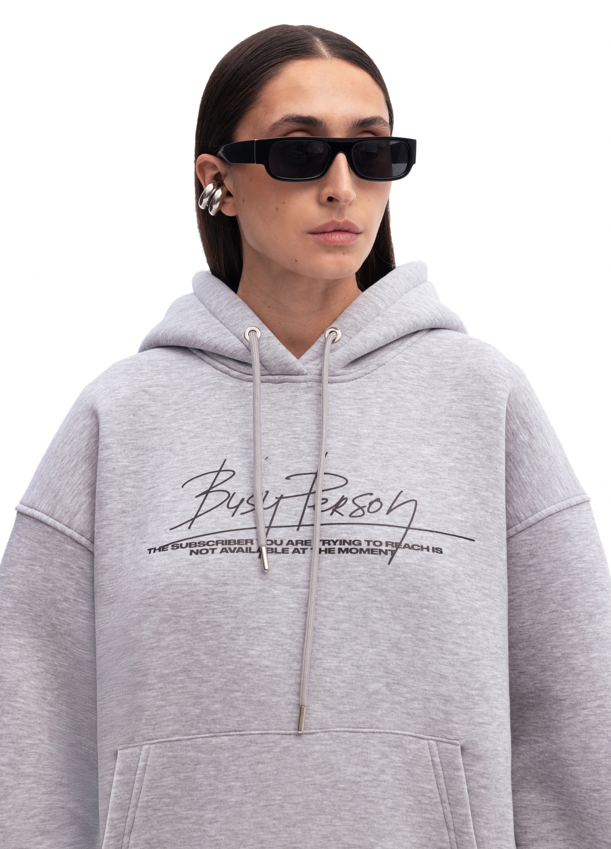 Oversized unisex hoodie is made from 100% cotton, ensuring a soft and comfortable feel against the skin. It features a stylish print in BUSY PERSON edition that adds a touch of individuality to the design. The oversize fit and comfortable silhouette.